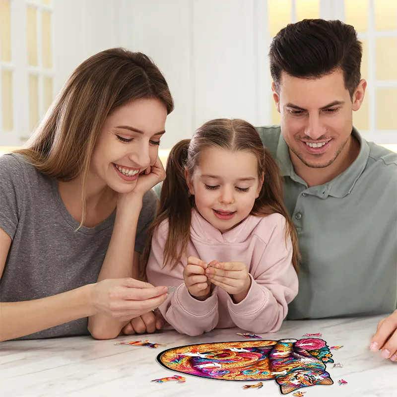 Dank fortschrittlicher UV-Drucktechnologie weisen unsere Holzpuzzles lebendige und lebensechte Farben auf, die an ein wahres Kunstwerk erinnern.