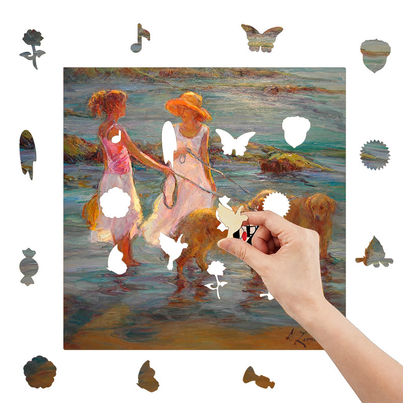Jedes Teil hat eine einzigartige Form und stellt entzückende Tiere, Blumen und Pflanzen dar. Leuchtende Farben und komplizierte Designs erwecken die Puzzles zum Leben.