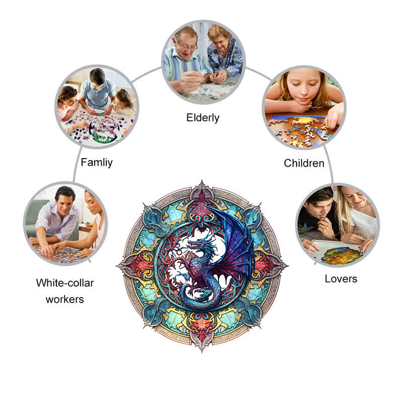 Drachen-Kunstwerk -3 Holzpuzzle