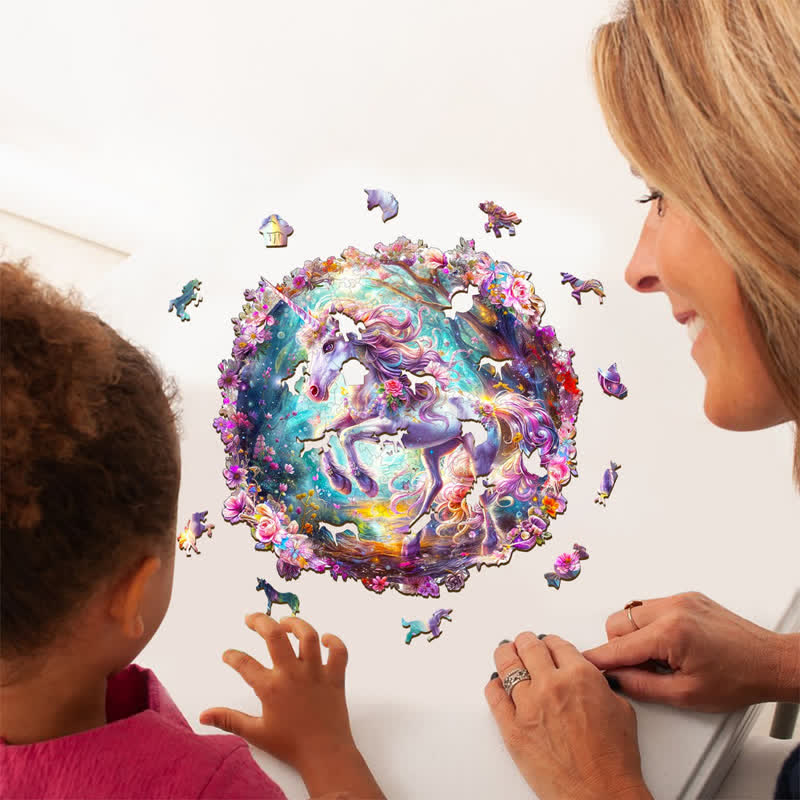 Jedes Teil hat eine einzigartige Form und stellt entzückende Tiere, Blumen und Pflanzen dar. Lebendige Farben und komplizierte Designs erwecken die Puzzles zum Leben.