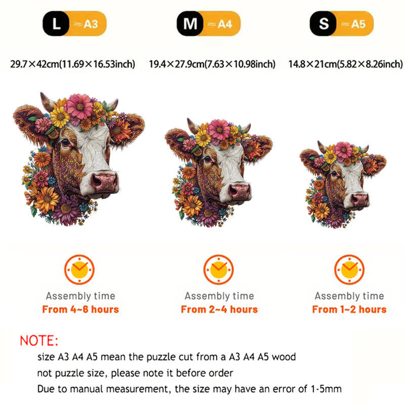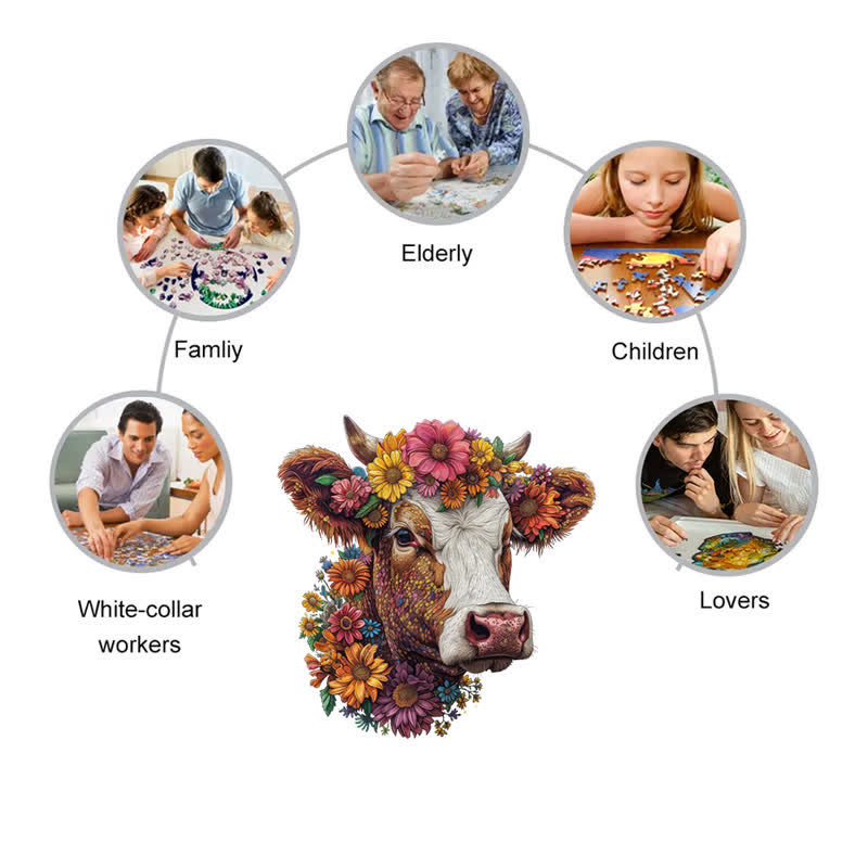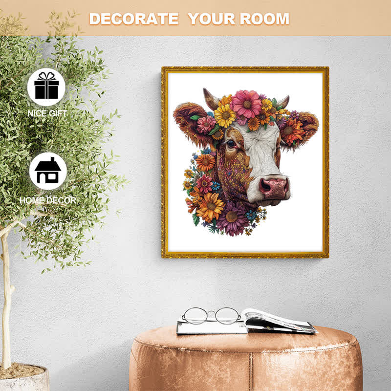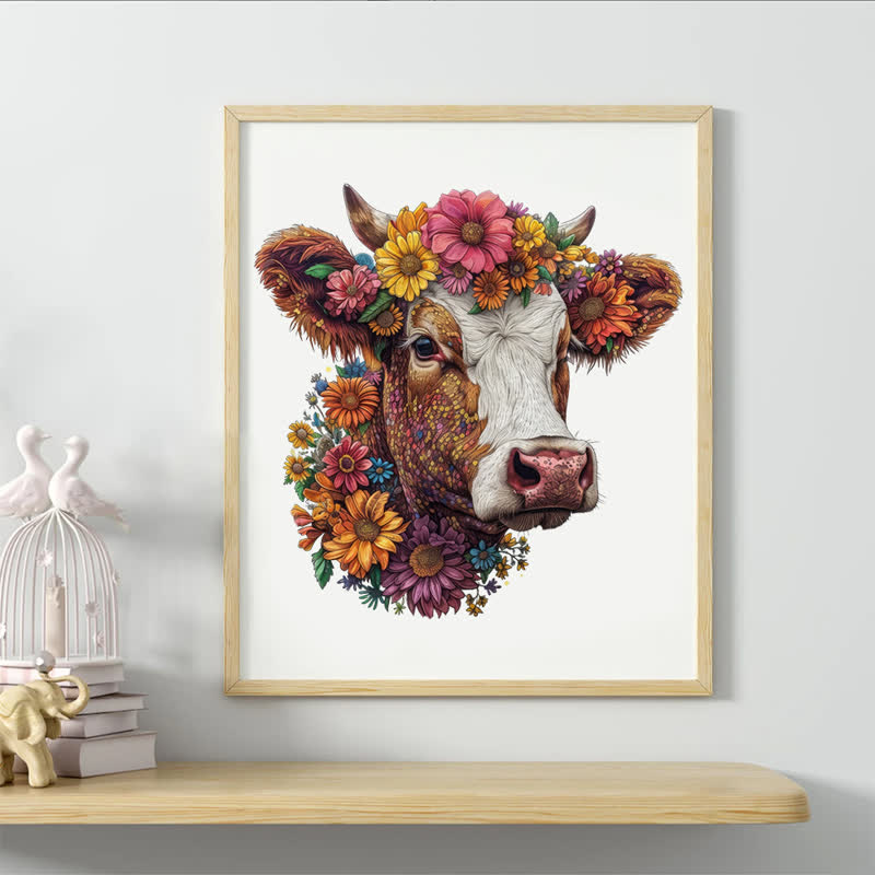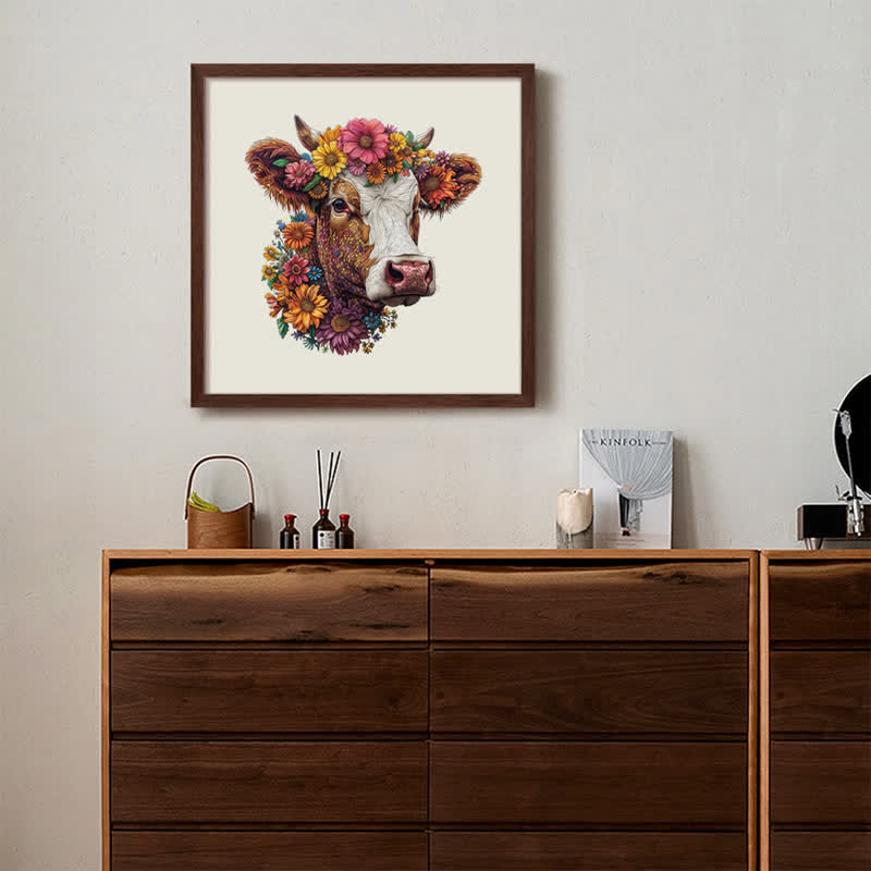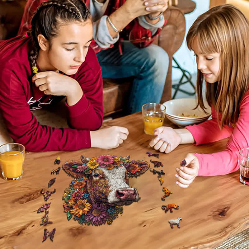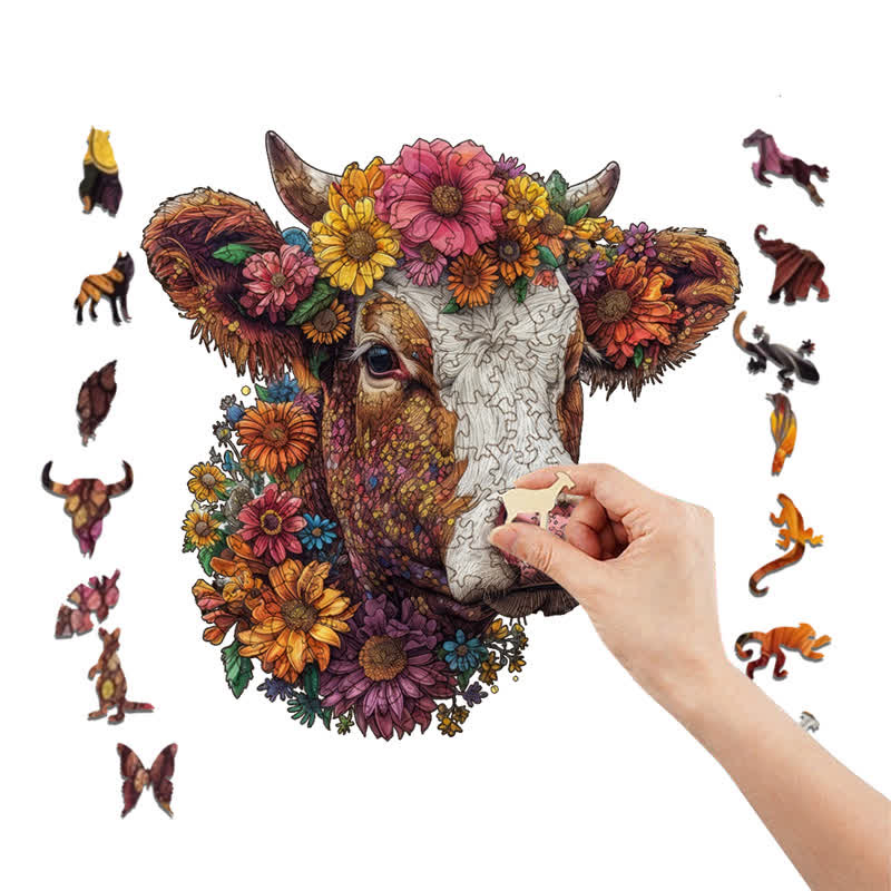 Florales Hochlandrind - Holzpuzzle