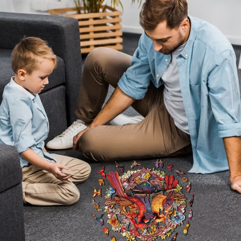 Jedes Teil hat eine einzigartige Form und stellt entzückende Tiere, Blumen und Pflanzen dar. Lebendige Farben und komplizierte Designs erwecken die Puzzles zum Leben.