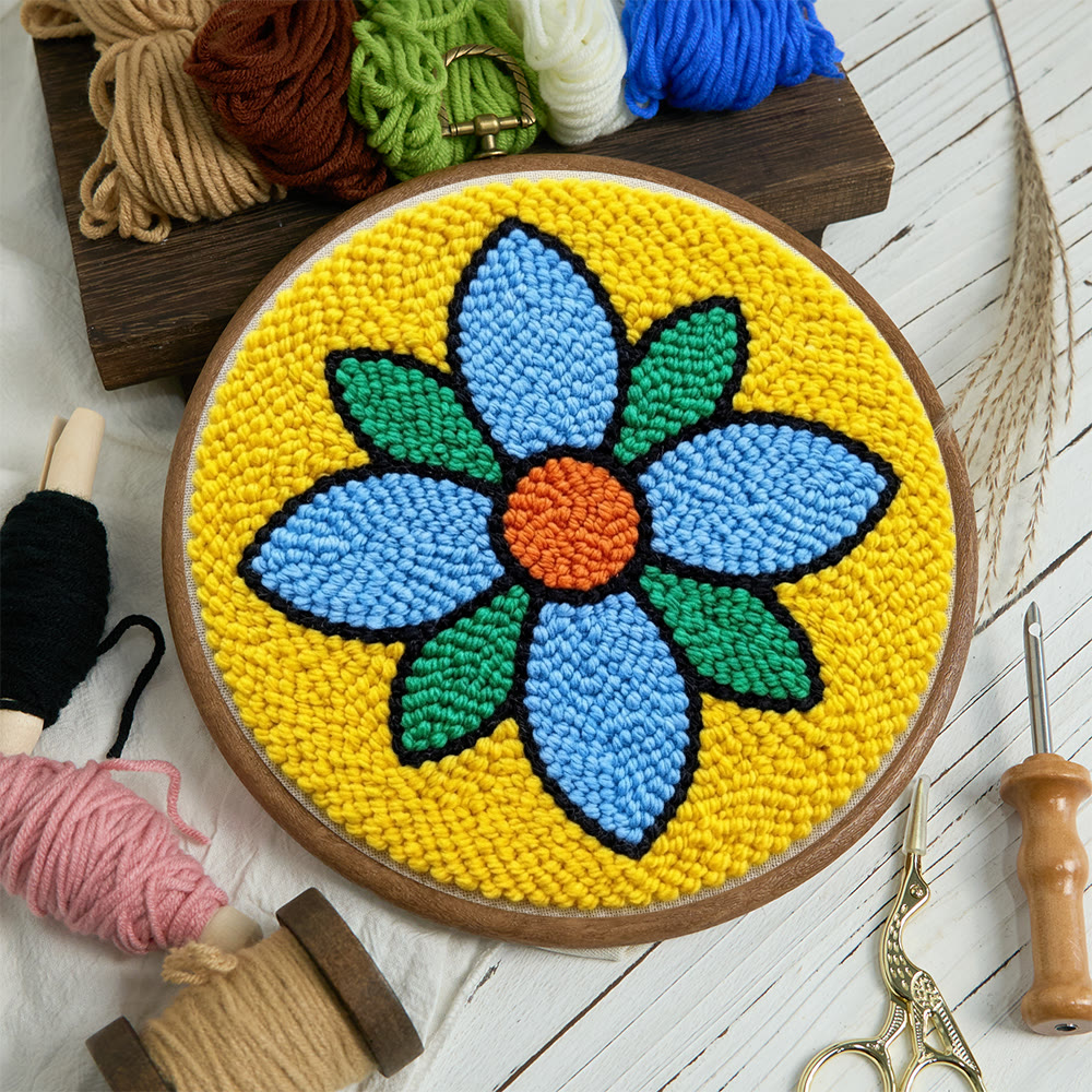 Lebendiges Blütenblatt-Punch-Needle-Set – Einfache Handarbeit | Einzigartiger Wandbehang - 8-Zoll-Reifenset - image 1