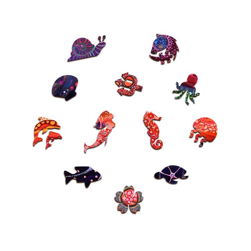 Jedes Teil hat eine einzigartige Form und stellt entzückende Tiere, Blumen und Pflanzen dar. Lebendige Farben und komplizierte Designs erwecken die Puzzles zum Leben.