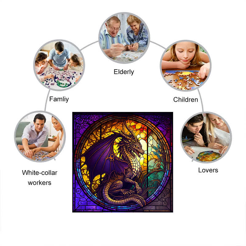 Rubbyoo Drache gebeizt -4 Holzpuzzle