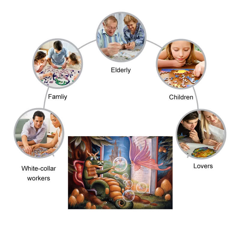 Jedes Teil hat eine einzigartige Form und stellt entzückende Tiere, Blumen und Pflanzen dar. Lebendige Farben und komplizierte Designs erwecken die Puzzles zum Leben.