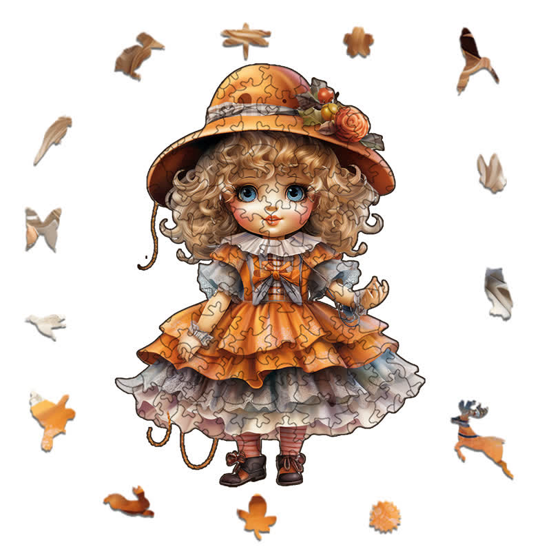 Rubbyoo Isolierte Vintage-Porzellanpuppen mit eleganten Hüten - Holzpuzzle
