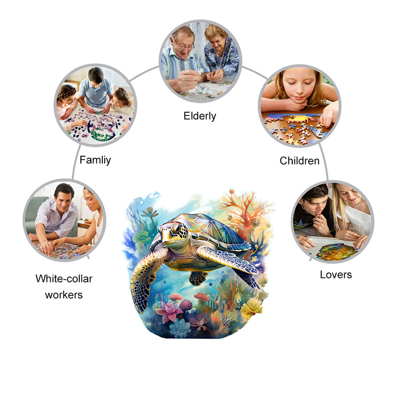 Jedes Teil hat eine einzigartige Form und stellt entzückende Tiere, Blumen und Pflanzen dar. Lebendige Farben und komplizierte Designs erwecken die Puzzles zum Leben.