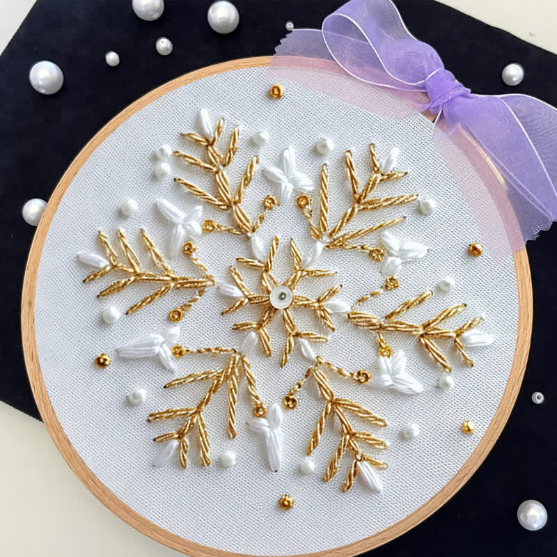 Rubbyoo Stickset - Schneeflocke in Gold und Weiß2