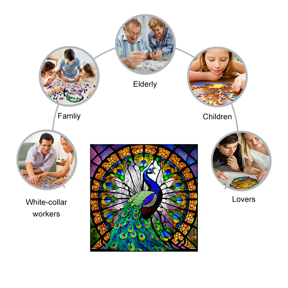 Jedes Teil hat eine einzigartige Form und stellt entzückende Tiere, Blumen und Pflanzen dar. Lebendige Farben und komplizierte Designs erwecken die Puzzles zum Leben.